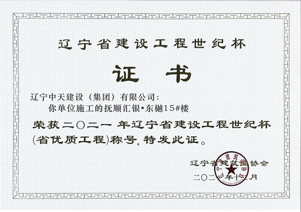 者的辛勤耕耘,许多建筑精品工程象一座座丰碑耸立在抚顺大地上,令人瞩目。抚顺市保障性住房建设工程荣获全国优质工程金奖,抚顺移动通讯综合楼、抚顺市电信综合楼、抚顺市三宝屯污水处理厂扩建及中水回用工程等多项工程获得“辽宁省世纪杯工程”、“辽宁市政金杯”工程等殊荣。公司还多次荣获“省建筑业质量管理先进施工企业”称号。