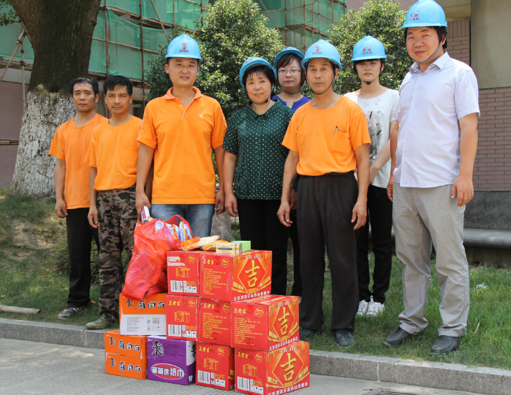 院领导在高温天气来到工地现场慰问,体现了常州建科院的人文关怀。慰问活动似微风般给坚持在酷暑工作的一线员工带来了丝丝凉爽,使员工们感受到了建科院大家庭的关怀。