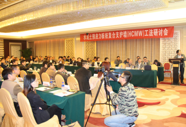 由常州市建筑科学研究院股份有限公司、江苏鼎达建筑新技术有限公司共同主办的“江苏省省级工法:水泥土预应力板桩复合支护墙(HCMW工法)研讨会”在凯纳豪生大酒店顺利举行。同济大学朱合华教授、日本国立长崎大学蒋宇静教授及山东科技大学、常州大学、常州工学院等多所高校相关专业教授参加了此次研讨,常州市城乡建设局、常州市交通局、常州市轨道交通发展有限公司、常州市铁建处、常州市市政管理处、北京城建设计研究总院有限责任公司、上海市隧道工程规定交通设计研究院、上海市城市建设设计研究总院、江苏省交通科学研究院股份有限公司、常州市新城房地产开发有限公司、黑牡丹a片无码等相关行业部门及我公司主要领导和技术人员也参加了活动。会议由公司副总工程师、研发部部长张菁燕主持,江苏鼎达建筑新技术有限公司总经理徐汉东就“HCMW工法”,蒋宇静教授就日本地下工程技术,朱合华教授就“无锡轨道交通车站深基坑设计与施工关键技术”的分别做了精彩的演讲。