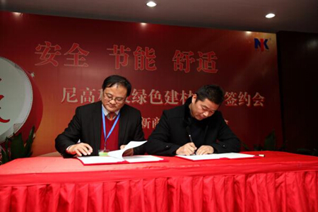 2014年12月12至14日,由江苏尼高科技有限公司主办,江苏鼎达建筑新技术有限公司、常州市建筑科学研究院股份有限公司、江苏省绿色建材工程技术中心协办的“2014年绿色建材签约会暨创新商业模式发布会”在尼高科技园隆重举行。江苏尼高科技有限公...